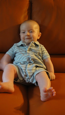 May 1 marked Harrison's 3 Month birthday. He is such a happy little guy and his smile beams from ear to ear. He still sleeps with Mommy and Daddy and doesn't really take naps - but despite that, I guess we will keep him :) He is noticing the world around him and likes to reach out to touch objects and people. He is enjoying tummy time a little more and likes to look at himself in the baby mirror. He is starting to roll to his side so I am sure that turning over is just around the corner!!!
